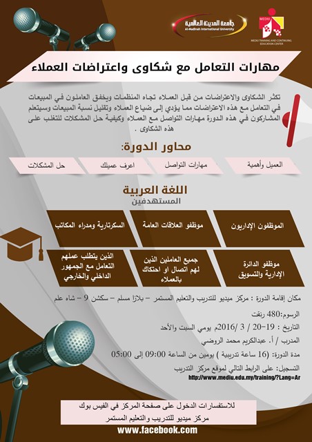 دورة: مهارات التعامل مع شكاوى واعتراضات العملاء – باللغة العربية
