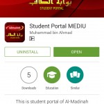 تم بتوفيق من الله، يوم الخميس الموافق 07 يناير 2016م إطلاق الإصدار الأول من تطبيق بوابة الطالب للهواتف الذكية بنظام الأندرويد على متجر جوجل Play store بعنوان (Student Portal MEDIU)، وذلك من منطلق حرص جامعة المدينة العالمية على توفير أعلى المستويات من الخدمات الطلابية ووضع كل ما يستجد من برمجة حدثية وأسلوب متطور بين متناول أيدي طلابها.