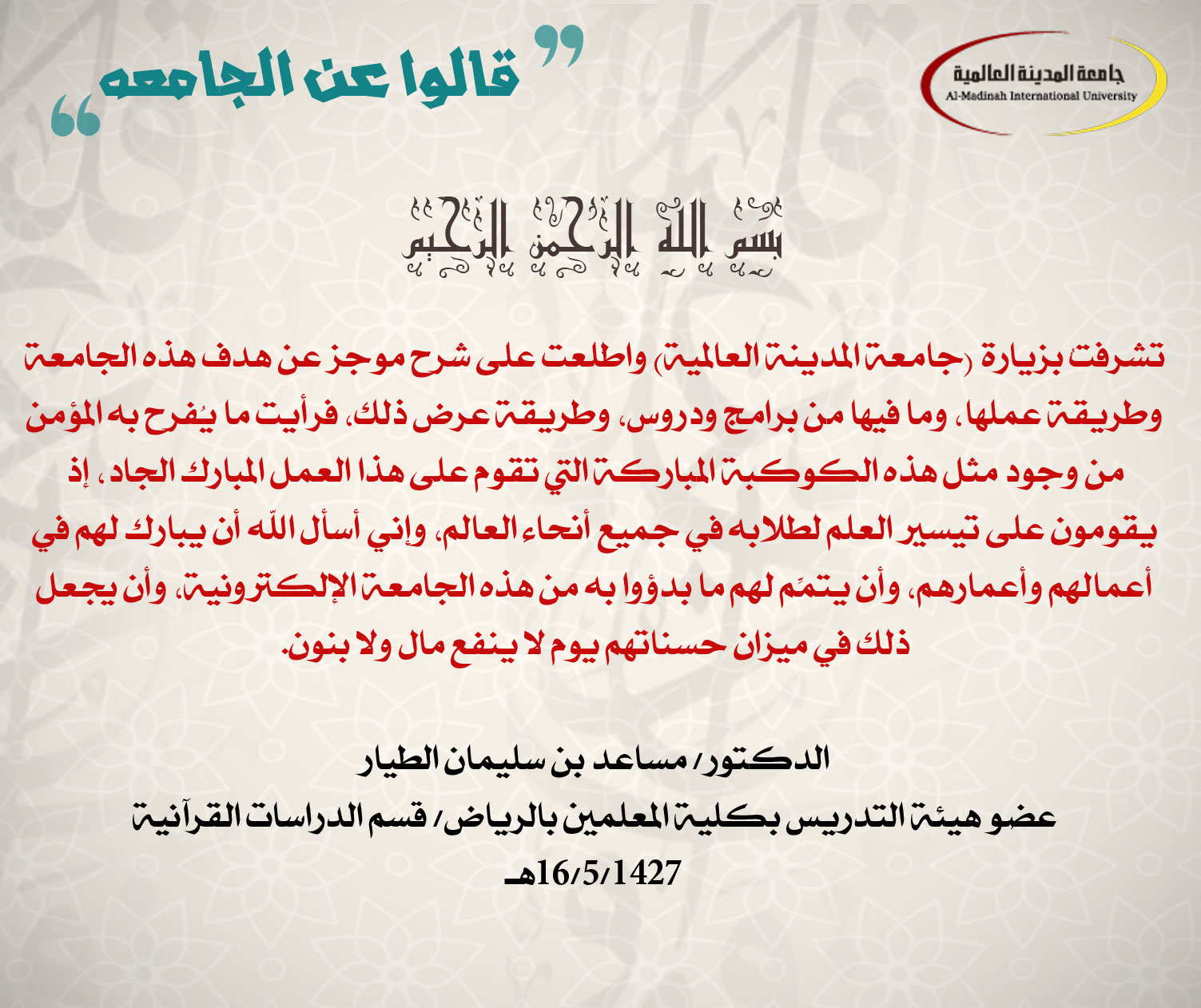 كلمات قالوا عن الجامعة (د. مساعد الطيار)