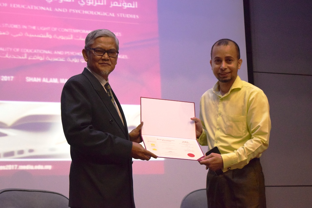 During the closing ceremony, Assoc. Prof. Dr. Ayman Aied Mohammed Mamdouh expresses his grartitude to the Honorable CEO on his patronage and guidance for the implementation of ICOEPS2017 and heartfelt gratitude to the researchers and participants from within and outside the region whom attended the conference. Dr. Mohamed Ibrahim El-Kadah; Assistant Professor of Educational Administration from Al Balqa Applied University, Jordan presented the concluding statement in which he stressed that the conference contributed to the communication between researchers in the field of educational and psychological studies and the exchange of experiences in educationa; scientific research issues.