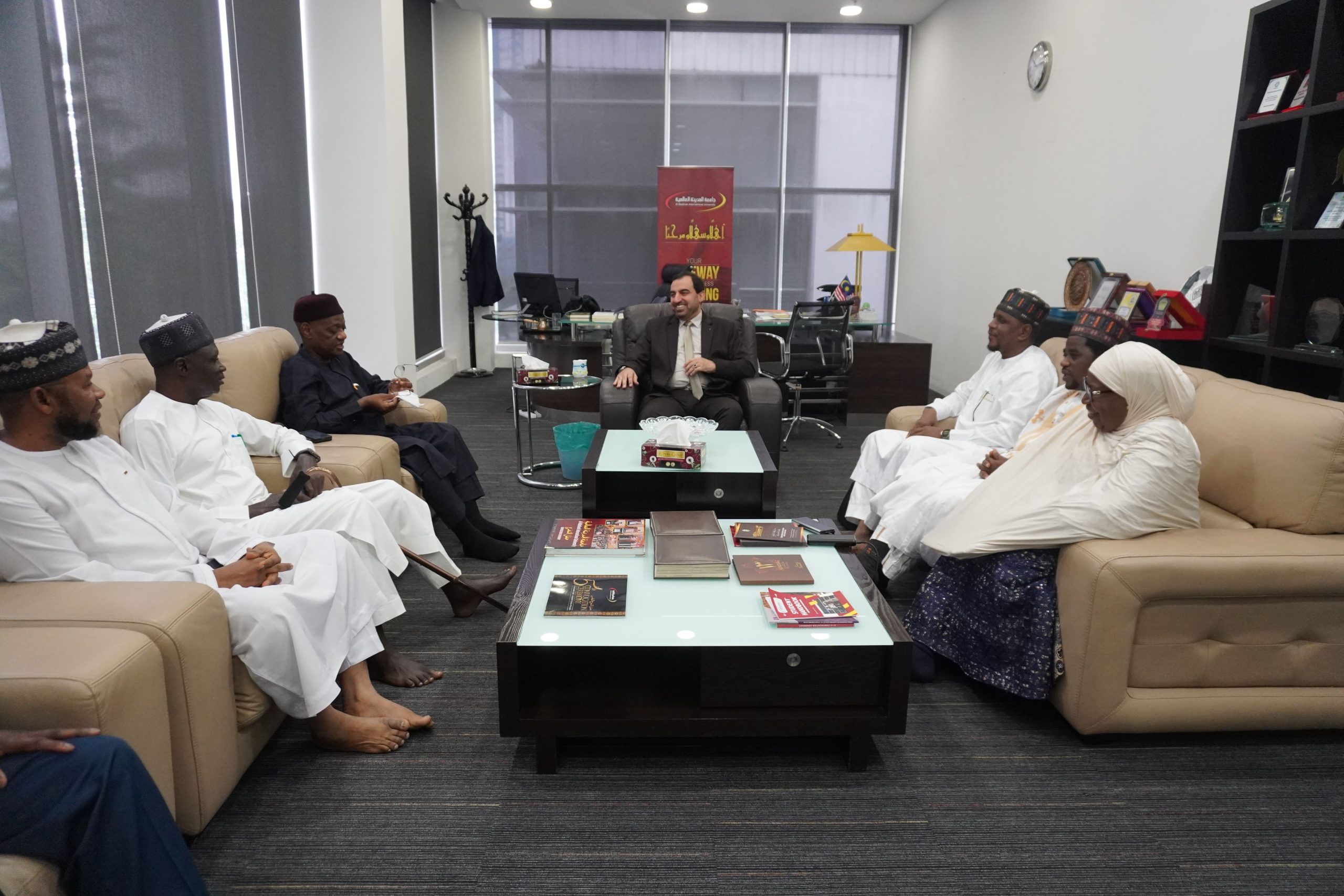 Al-Madinah International University in Kuala Lumpur received a delegation from the Government of Yobe State, Nigeria, on Friday, 28 November 2025, to discuss cooperation with the university, particularly in curriculum development, teacher training, and educational consultancy. The delegation was led by H.E. Dr. Abba Idris Adam, Associate Professor and Minister of Basic and Secondary Education, and Chairman of the Establishment Committee. The delegation also included Alhaji Hassan Babayo, Chairman of the Universal Basic Education Board in Yobe State; Prof. Sharif Muhammad Ibrahim, CEO of the Yobe Micro Finance Bank and a proud graduate of Al-Madinah International University; Assoc. Prof. Dr. Khadija Mali from Yobe State University; Mr. Abdullah Dahiru Bula, Coordinator of the AGILE Project in Yobe State; and Alhaji Maina Degma Ghana, Chairman of the Basic Education Committee in the State House of Assembly.
