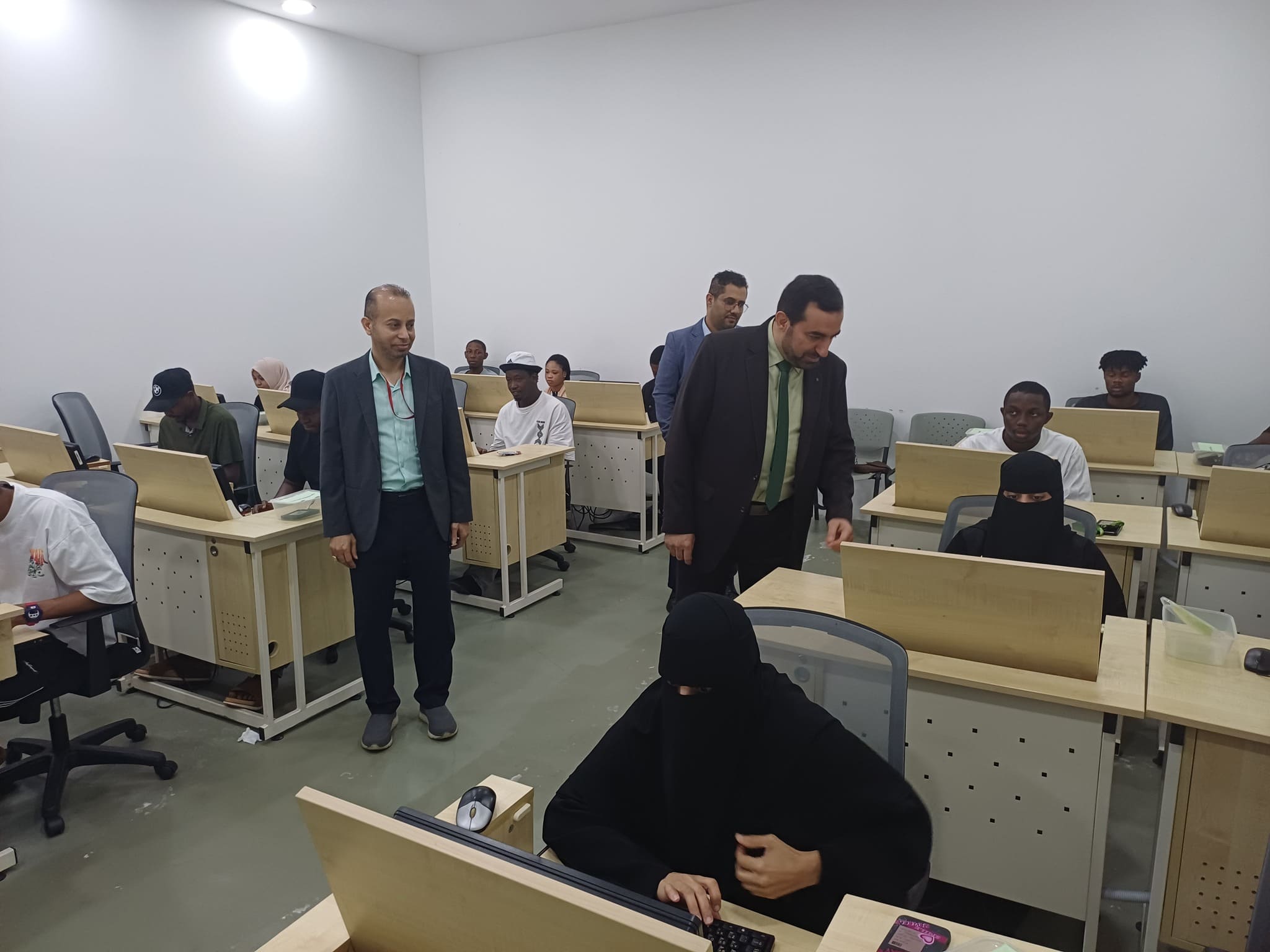 The CEO was accompanied by the Dean of the Faculty of Computer Science, Assoc. Prof. Dr. Yazeed AlSayed Ali Al Moayed, and the Dean of the Faculty of Finance and Administrative Sciences, Assoc. Prof. Dr. Mazen Mohammed Farea. During the tour, they engaged with students, reviewed feedback, and examined the mechanisms used for examination organization, invigilation, and assessment, in addition to procedures implemented to ensure discipline and quality.