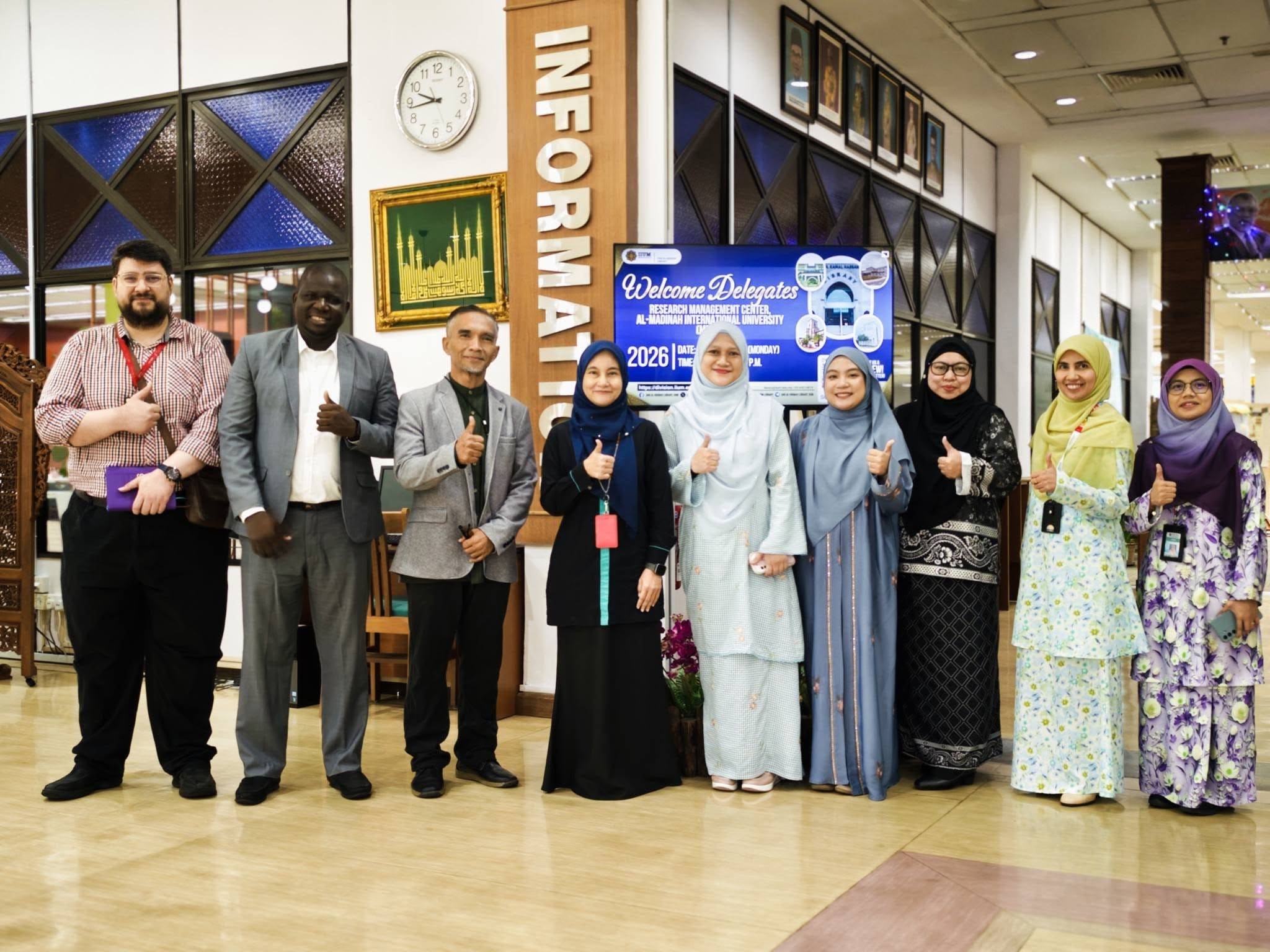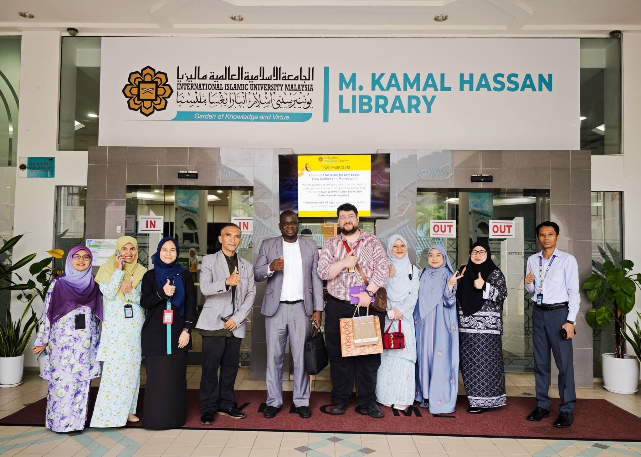 واختُتمت الزيارة بجولة تعريفية في حرم الجامعة الإسلامية العالمية في ماليزيا، حيث اطّلع الوفد على مرافقها الأكاديمية، كما قام بزيارة مكتبة الجامعة التي تُعد من أبرز المراكز المعرفية فيها، قبل أن يتم تبادل الهدايا التذكارية بين الجانبين في ختام الزيارة.