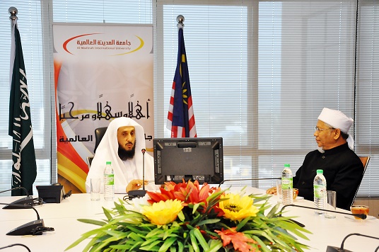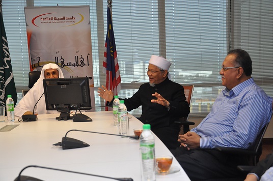 Al-Madinah International University (MEDIU) received a visit from Fatoni University (http://www.ftu.ac.th/), Thailand on Wednesday, 27 April 2016. The delegation was headed by the Rector of Fatoni University, Syeikh Dr. Ismail Lutfi Bin Abdul Rahman Japakiya and was welcomed by MEDIU’s Honorable CEO; Prof. Dr. Mohammad Khalifa Al-Tamimi, Deputy CEO of Academic Affairs Division; Assoc. Prof Dr Hj. Wan Mat Hj Sulaiman and Deputy CEO of Students Affairs Division; Prof. Dr. Hj. Wan Sulaiman Bin Wan Yusoff. The honored guest was accompanied by Prof.Mustafa Aziz, academic representative of Fatoni University and Honorable Dato’ Muhamad Alayuddin Bin Che Hassan, Deputy President of Malay Chamber of Commerce Malaysia (Dewan Perniagaan Melayu Malaysia-DPMM). The honored guest expressed his pleasure for the visit, which comes in the framework of cooperation between MEDIU and international university working in the service of society as this visit aims to see the march of the university and its achievements.